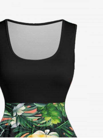 Robes Graphiques > Robe vintage grande taille à imprimé perroquet, jus de fruits, fleurs et feuilles tropicales, style hawaïen des années 1950