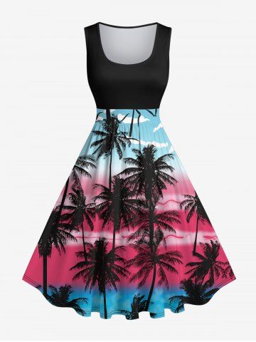 Robes Graphiques > Robe Vintage Hawaïen Arbre Noix de Coco Imprimé en Blocs de Couleurs de Grande Taille