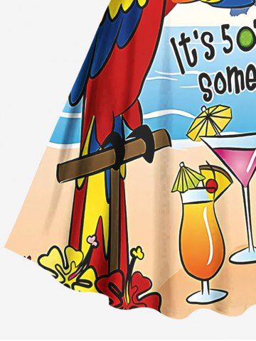 Robes Graphiques > Robe vintage hawaïenne à imprimé perroquet, jus de fruits, cocotier et nuages, grande taille