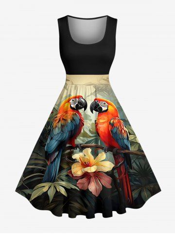 Robes Graphiques > Robe vintage hawaïenne années 1950 à imprimé perroquet, fleurs et feuilles, grande taille