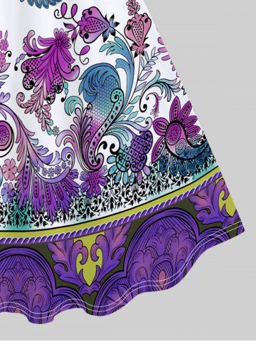 Robe Vintage Ligne A Cachemire Imprimé de Grande Taille sans Manches - Pourpre - Pourpre