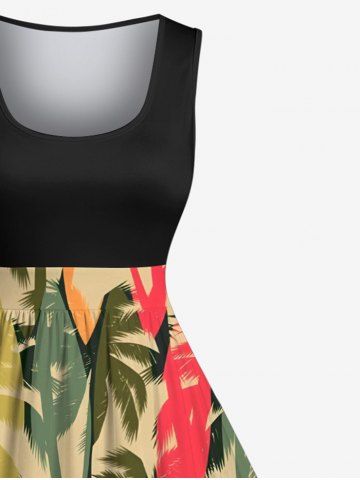 Robe Vintage Trapèze Arbre Noix de Coco Imprimé en Blocs de Couleurs Grande Taille - Noir - Noir