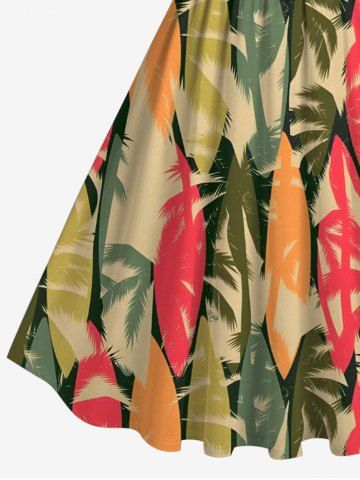 Robes Graphiques > Robe Vintage Trapèze Arbre Noix de Coco Imprimé en Blocs de Couleurs Grande Taille