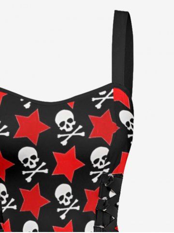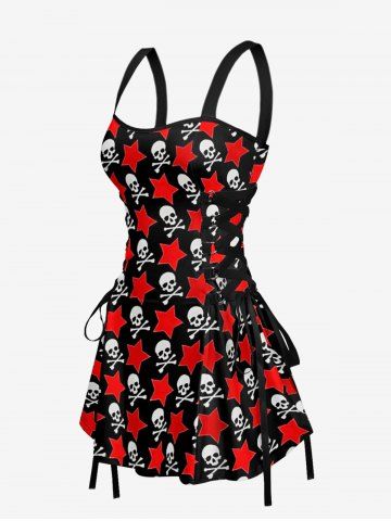 Skulls Star Print Lace Up A Line Dress - Rouge - Rouge