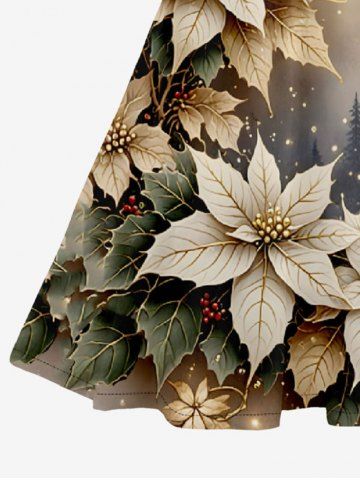 Robes Graphiques> Tree Flower Leaf Glitter Ombre Galaxy Print Hawaii Midi 50's Vintage Dress