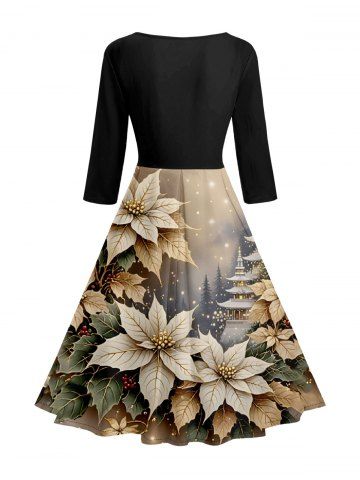 Tree Flower Leaf Glitter Ombre Galaxy Print Hawaii Midi 50's Vintage Dress - Noir - Noir