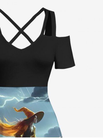 Robes Halloween > Maxi Robe D'Halloween Ligne A Croisée Ombrée Ciel de Grande Taille