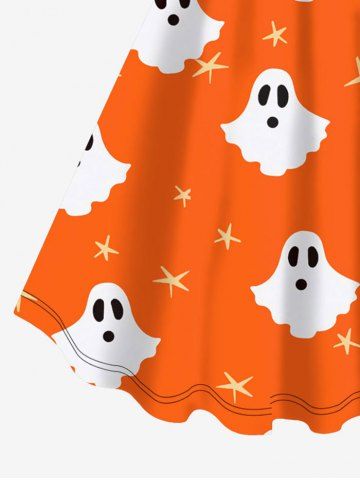 Plus Size Halloween Smile Ghost Star Print Tank Dress - Orange - Orange