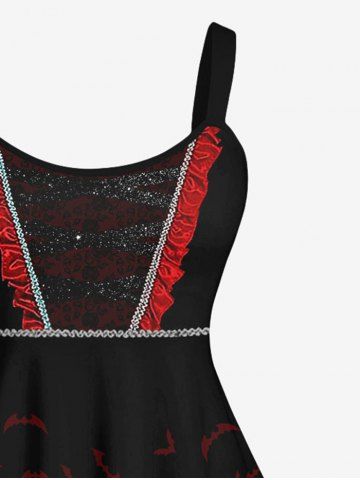 Robe D'Halloween Costume de Chauve-souris et Vampire Imprimés à Paillettes à Ourlet en Dentelle de Grande Taille - Rouge Foncé - S