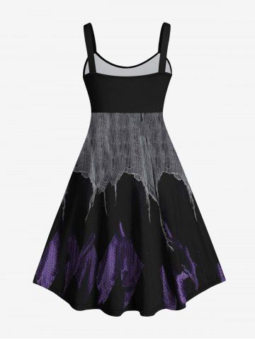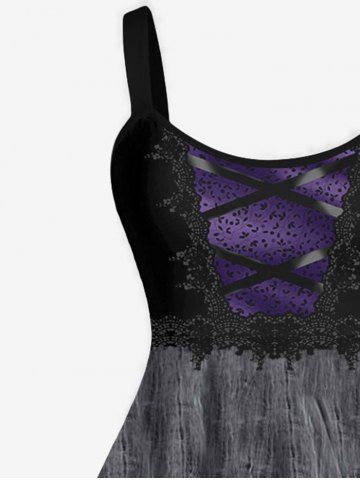Halloween Witch Costume Plus Size Crisscross Ripped Rags Tattered Wind 3D Print Tank Dress