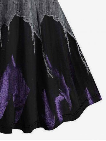 Robe Élastique Ceinturée avec Croisés et à Imprimé Sorcière pour Halloween 3D - Pourpre - Pourpre