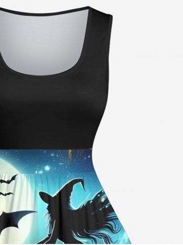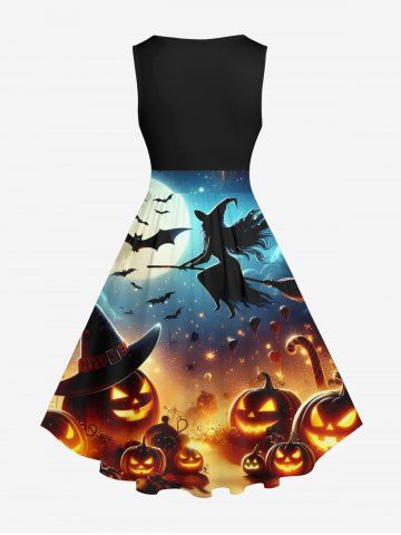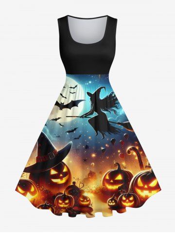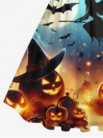 Robes Halloween > Robe D'Halloween Vintage Citrouille Chauve-souris Imprimés de Grande Taille