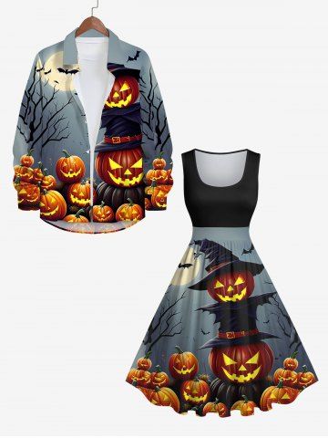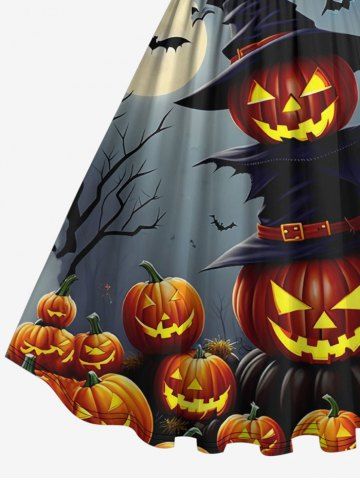 Robe D'Halloween Vintage Citrouille Chauve-souris Imprimés Grande Taille - Multi-a - 4x