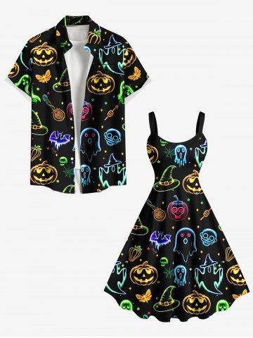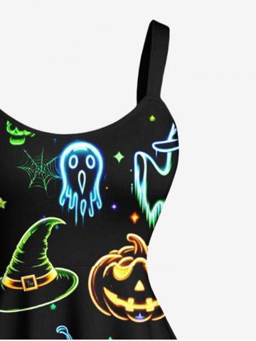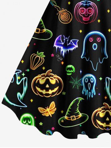 Robe débardeur grande taille à imprimé citrouille, fantôme, chauve-souris, papillon, crânes, bonbons, étoiles - Noir - Noir