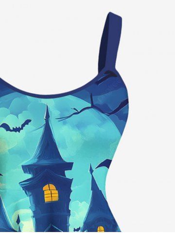 Robe débardeur grande taille à imprimé citrouille, lanterne, chauve-souris, lune, château, Halloween - Bleu - Bleu