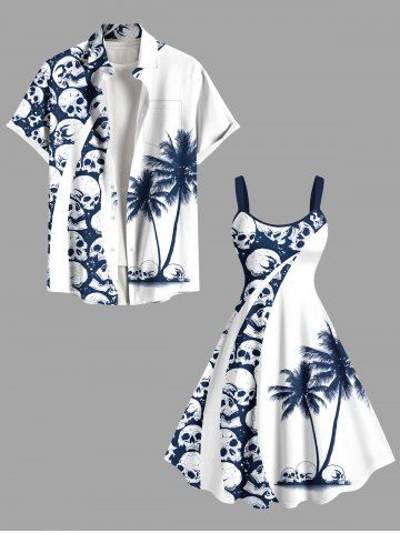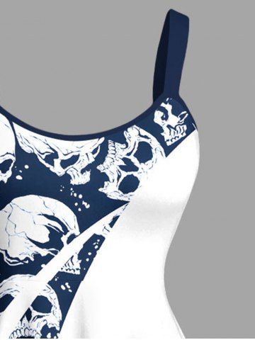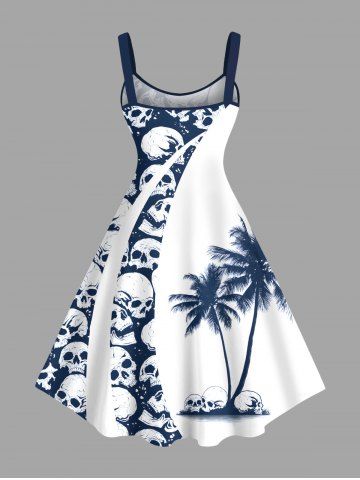 Robe débardeur grande taille à imprimé cocotiers et crânes d'Halloween - Blanc - Blanc