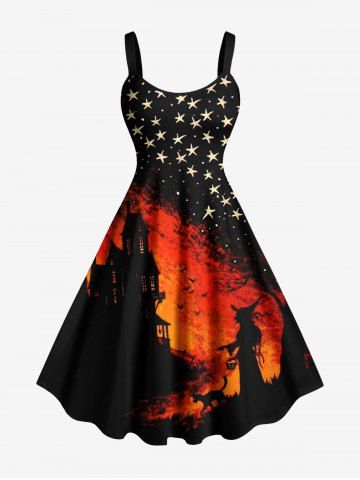 Robes Halloween > Robe débardeur grande taille à imprimé étoiles, chat, sorcier, chauve-souris, Halloween