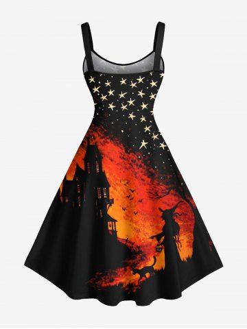 Robe débardeur grande taille à imprimé étoiles, chat, sorcier, chauve-souris, Halloween - Noir - Noir