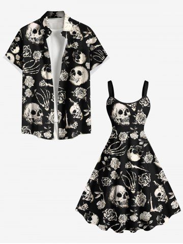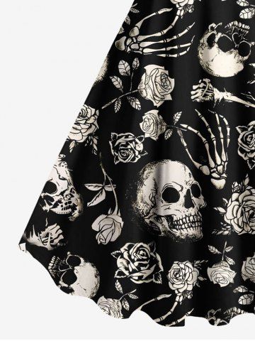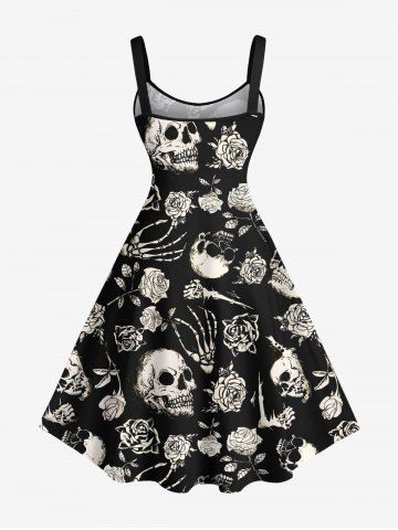 Robe débardeur grande taille à imprimé squelette et griffes pour Halloween, motif tête de mort, rose et fleur - Noir - Noir