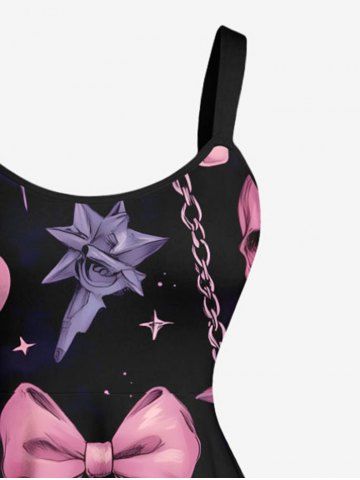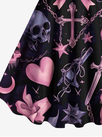 Robe débardeur grande taille à imprimé tête de mort, cœur, nœud papillon, étoiles et chaînes pour Halloween - Noir - Noir