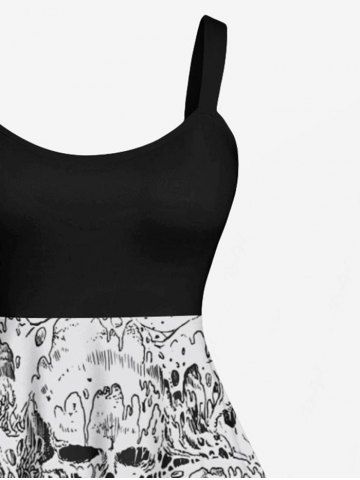 Robe débardeur grande taille à imprimé tête de mort pour costume d'Halloween - Noir - Noir
