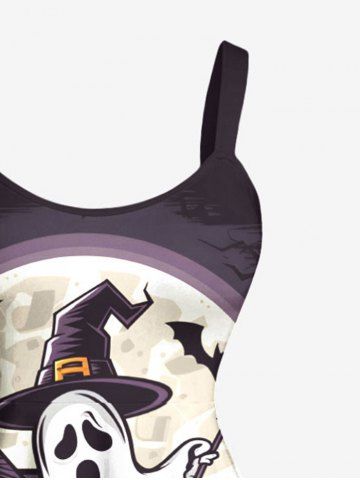 Robes Halloween > Robe débardeur grande taille avec chapeau d'Halloween, citrouille, fantôme, chauve-souris, arbre, château imprimé