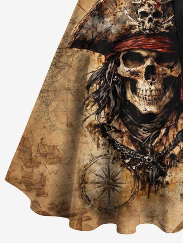Robes Halloween > Robe grande taille à col rabattu et ceinture, motif tête de mort, bateau pirate, boutons et imprimé gouvernail