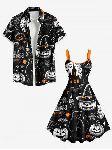 Robe trapèze grande taille à imprimé citrouille, chat, sorcière, toile d'araignée, chauve-souris, château, costume d'Halloween - Noir - Noir