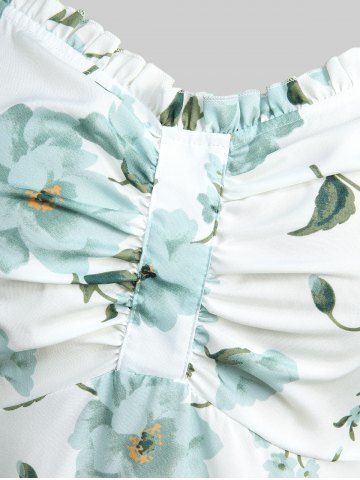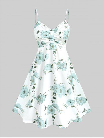 Robes Imprimées > Robe style cottagecore grande taille avec haut court plongeant torsadé et bretelles spaghetti à imprimé floral 3D