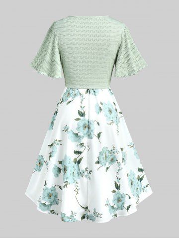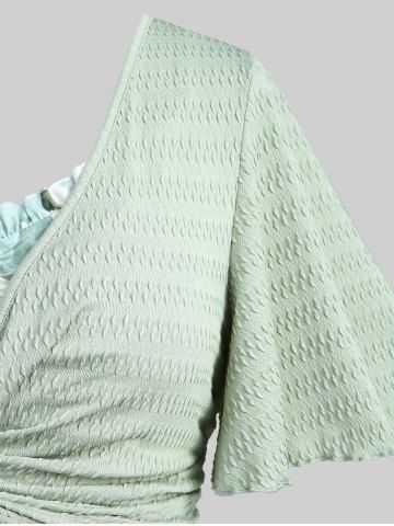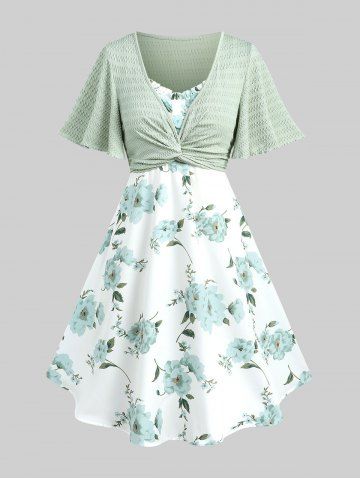 Robe style cottagecore grande taille avec haut court plongeant torsadé et bretelles spaghetti à imprimé floral 3D - Vert - Vert