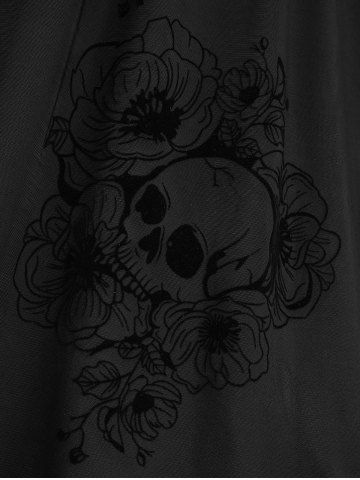 Robe débardeur à lacets et œillets en dentelle avec motif de roses et de crânes - Noir Graphite - Xxxl