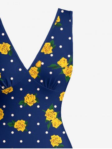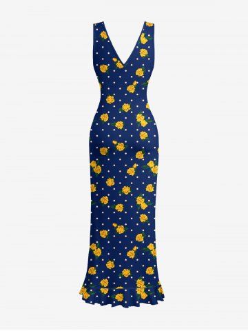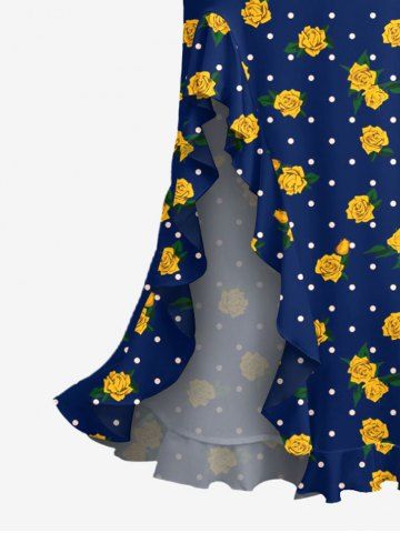 Robe hawaïenne à imprimé floral et pois, fendue et à volants - Bleu Marine - Bleu Marin