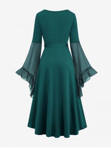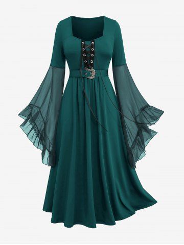 Robe grande taille style Renaissance médiévale à œillets, lacets, manches cloche, ceinture à boucle - Vert Profond - 3x | Us 22-24