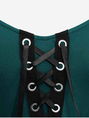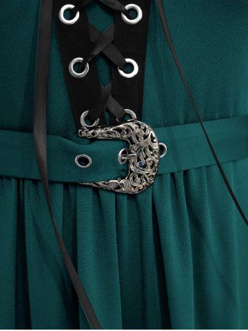 Robe grande taille style Renaissance médiévale à œillets, lacets, manches cloche, ceinture à boucle - Vert Profond - 4x | Us 26-28