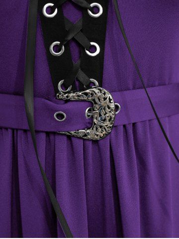 Robe grande taille style Renaissance médiévale à œillets, lacets, manches cloche, ceinture à boucle - Concorde - 5x | Us 30-32
