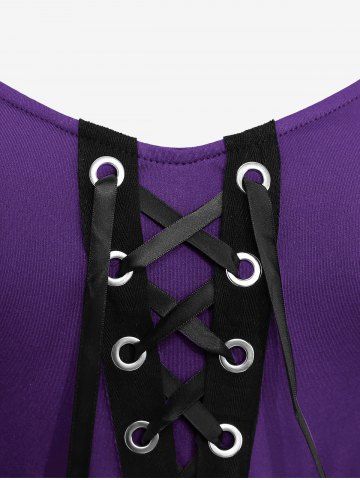 Robes Longues > Robe grande taille style Renaissance médiévale à œillets, lacets, manches cloche, ceinture à boucle