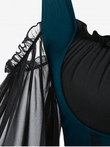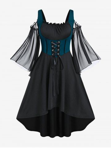 M*****y4Plus Size Lace Up Cold Shoulder Flare Sleeves High Low Ruched Renaissance Corset DressColor: RED Size: 4X | US 26-28Fits great I love the high low style sleeves are nice