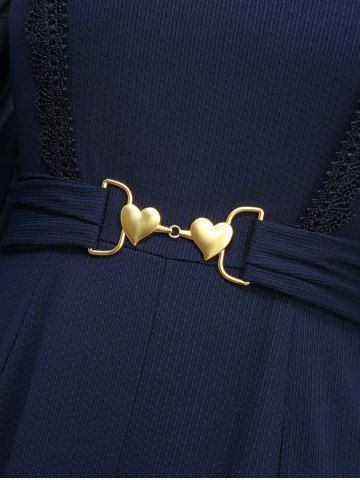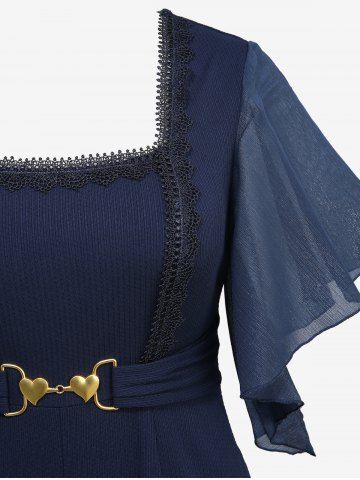 Robe en Argent avec Poche en Jointif en Forme de Cœur et à Manches Papillon Grande-Taille - Bleu Profond - 4x | Us 26-28