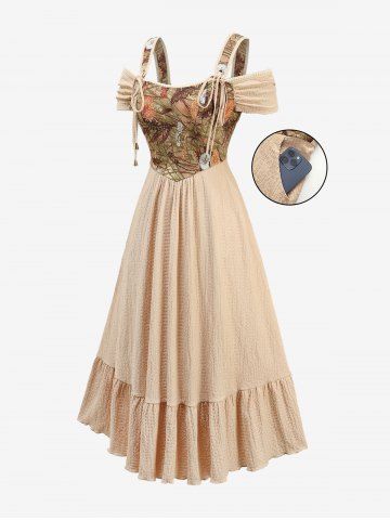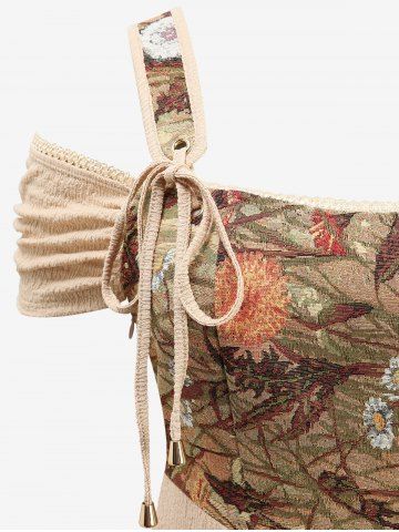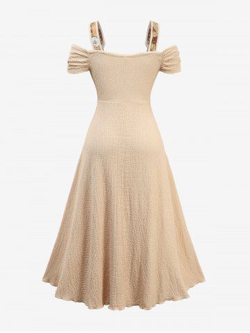 Robe grande taille à imprimé floral, bordure en dentelle, fronces, poches et épaules dénudées - Couleur Du Désert - L | Us 12