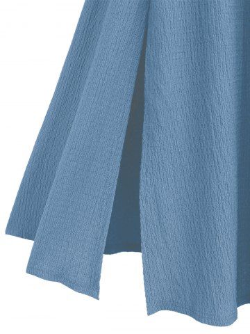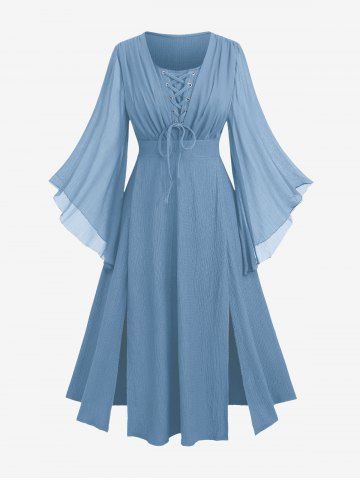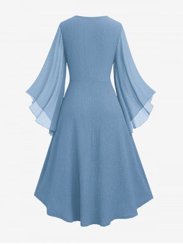 Robe grande taille à manches cloche froncées et à lacets en maille texturée - Bleu Ciel - Bleu Ciel