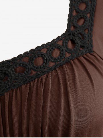 Robe mi-longue style Renaissance grande taille, froncée, tressée, à manches cloche, avec ceinture et boucle - Café Profond - 2x | Us 18-20