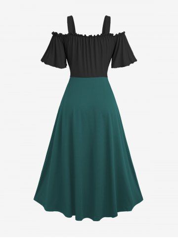p*****e5Plus Size Medieval Renaissance Cold Shoulder Puff Sleeves Contrast Colorblock Lace Up Belted Ruched A Line DressColor: MULTI-F Size: 1X | US 14-16I love wearing this to D&D in-person sessions. Bard life.