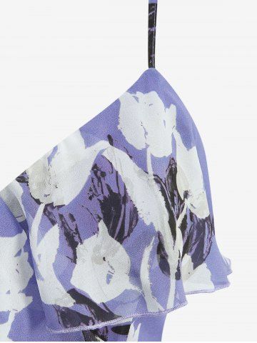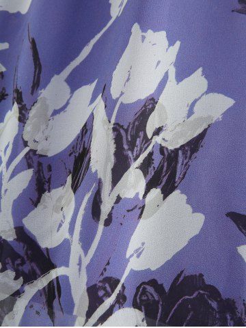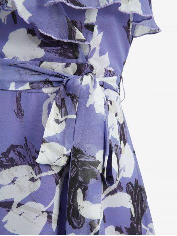 Robe nuisette trapèze à volants et imprimé floral, fendue, avec ceinture amovible - Pourpre - Pourpre