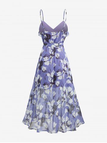 Robes Longues> Robe nuisette trapèze à volants et imprimé floral, fendue, avec ceinture amovible