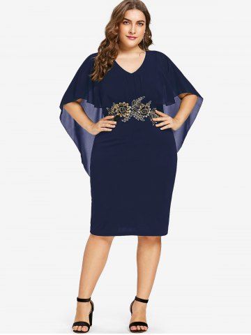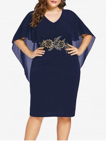 Robe capelette semi-transparente à broderie florale grande taille - Bleu Profond - L | Us 12