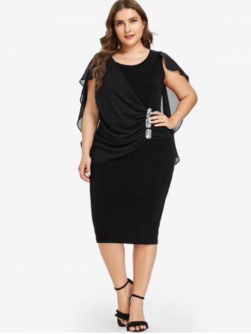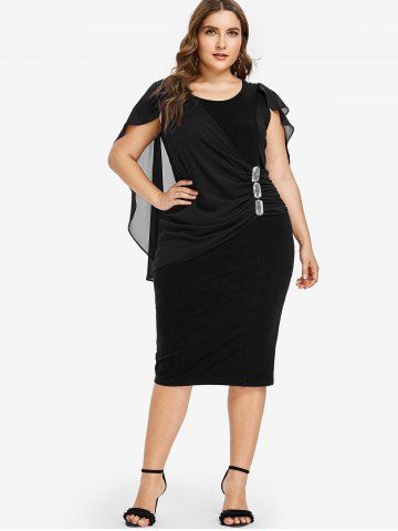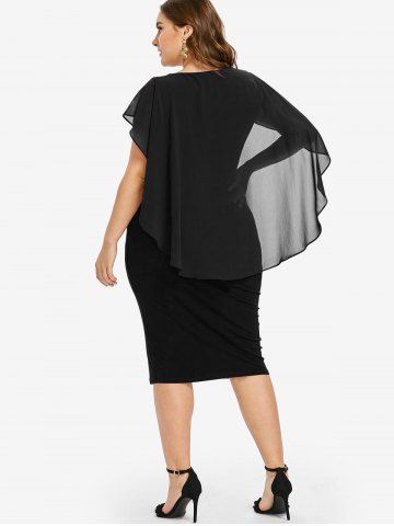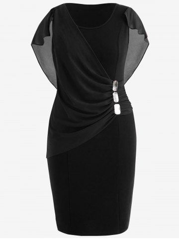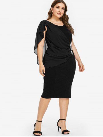 Robe cintrée froncée grande taille arrivant au genou - Noir - Noir