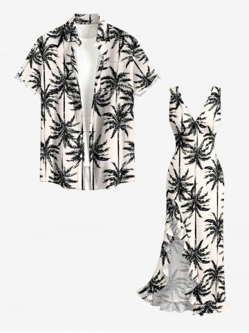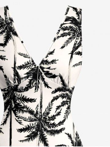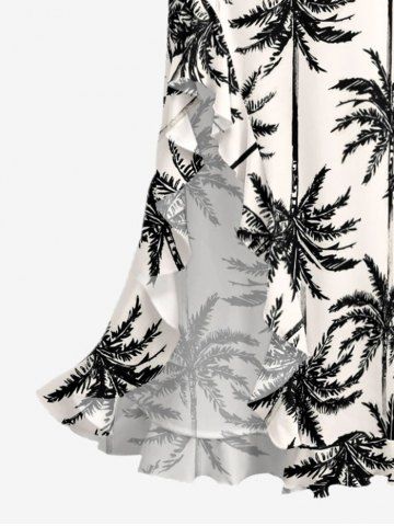 Robe hawaïenne à imprimé cocotiers, volants et fente cache-cœur - Noir - Noir