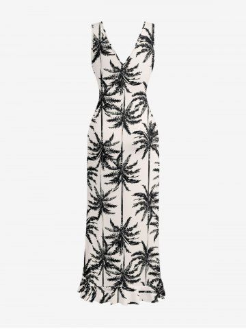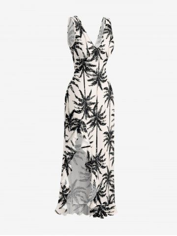 Robes Moulantes> Robe hawaïenne à imprimé cocotiers, volants et fente cache-cœur