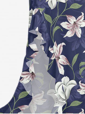 Robe hawaïenne à imprimé fleurs, feuilles et branches, à volants et fente - Concorde - L