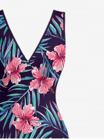 Robe hawaïenne à imprimé floral d'hibiscus et feuilles tropicales, fendue et à volants, style hawaïen - Concorde - Xl
